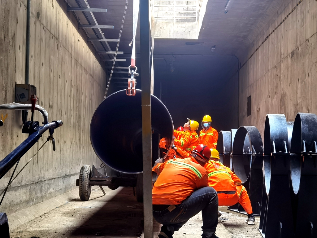 管廊內(nèi)外設(shè)專人調(diào)度指揮運(yùn)輸管道
