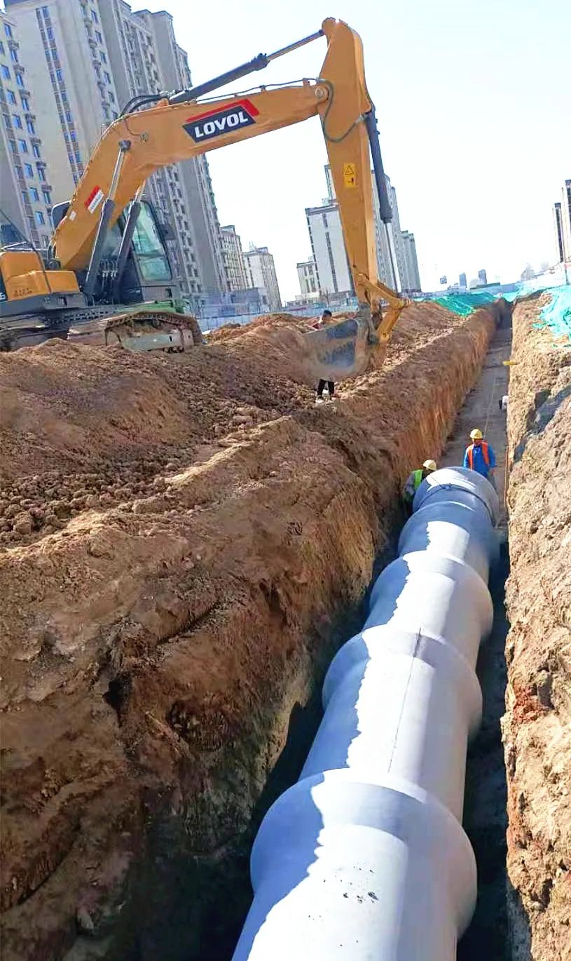 施工過程中,由于路面范圍內(nèi)高壓線塔桿林立,地上障礙物較多,地下管線復(fù)雜且權(quán)屬單位不明,為施工帶來很大困擾。項(xiàng)目部不等不靠,對(duì)已有工作面的地方進(jìn)行灰土施工,并積極與建設(shè)單位對(duì)接,提交相關(guān)資料。在管網(wǎng)施工中,考工路項(xiàng)目部一方面了解錯(cuò)綜復(fù)雜的地下管網(wǎng)走向,另一方面秉承安全、環(huán)保、高效、高質(zhì)的原則,采取封閉、勘察、開挖、覆蓋、安裝、回填、逐層夯實(shí)依次推進(jìn)的節(jié)奏展開地下管網(wǎng)施工,成功克服管線作業(yè)困難,保障項(xiàng)目施工穩(wěn)步推進(jìn)。