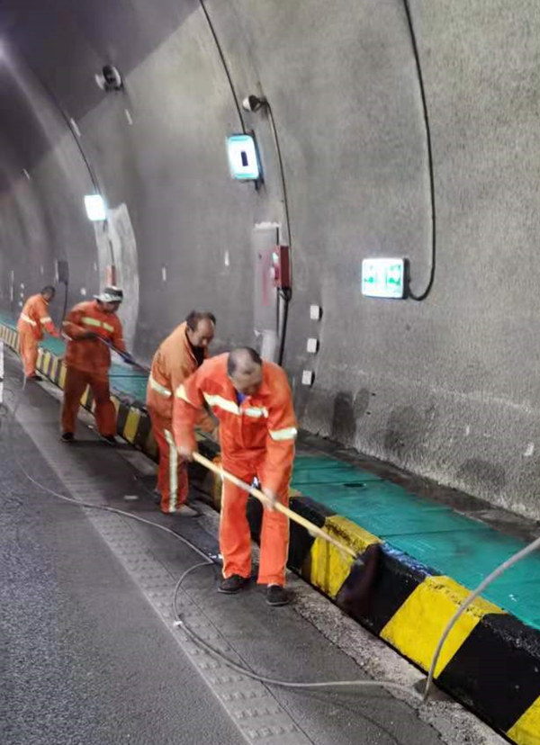 養(yǎng)護員沖刷疏通橋梁泄水孔