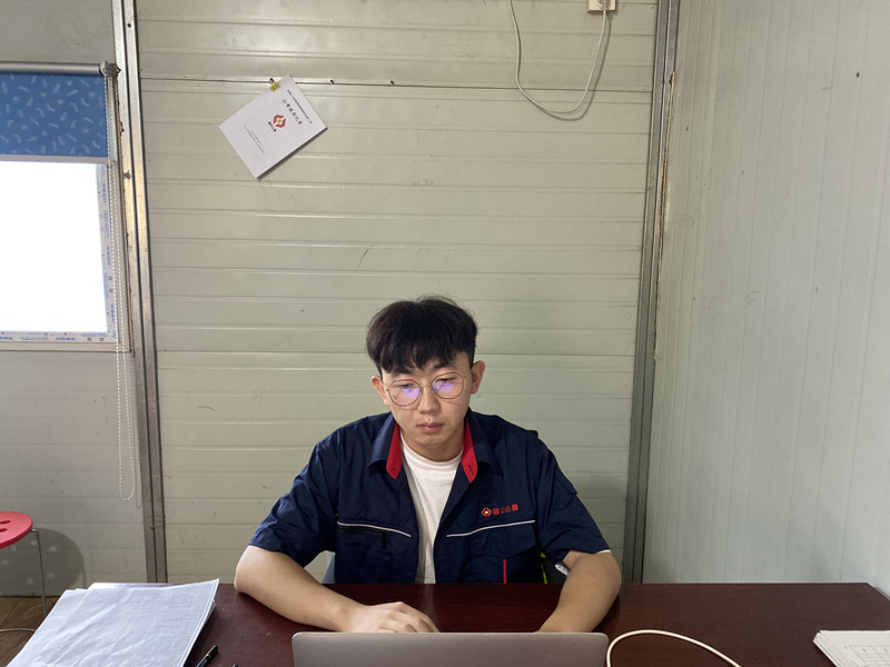 盛銘,一個“最”年輕的九零后小伙子,畢業(yè)于山東交通職業(yè)學(xué)院,現(xiàn)任G205郯城項目計劃合同部技術(shù)員一職。九九年出生的他看起來似乎并沒有吃過什么苦,不太強壯的身板下似乎沒有什么力量,但他在實際中的表現(xiàn)早已打破了我的這個想法。早起開會學(xué)習(xí)的有他,伏案休息的有他,熬夜加班的還有他,他小小的身體里像是凝聚著無盡的能量,隨處散發(fā)耀眼的光芒。在此之前他主要負責(zé)京滬路面分部質(zhì)檢資料、合同結(jié)算及各項事宜,向上對接總公司、分公司,向下對接各部室、施工隊伍,工作很是繁瑣,卻不見他抱怨幾分。他工作認真負責(zé),有計劃、有目標(biāo),從不含糊,雜亂的工作也能讓他梳理的井井有條;他樂于幫助同事、團結(jié)同事,也能夠俯身向前輩請教;善于聽取別人的建議,也能夠在工作中得到改進和提升。他對工作的那股沖勁感化著身邊的人,他是年長同事們口中的那個“好孩子”,是年輕同事們口中的“好朋友”,無時無刻不在散發(fā)積極能量的他得到了大家的一致好評。有次中午,路過他的辦公室查閱資料,趴在座位上休息的他被我的推門聲吵醒,我問他怎么不去宿舍休息會,他說:“太麻煩了,趴會就行,一會就要上班了”。我問他:“這么拼干啥,也不能苦了自己呀”。他說:“我是新人,多干點,多吃點苦沒啥的,我喜歡這份工作”。