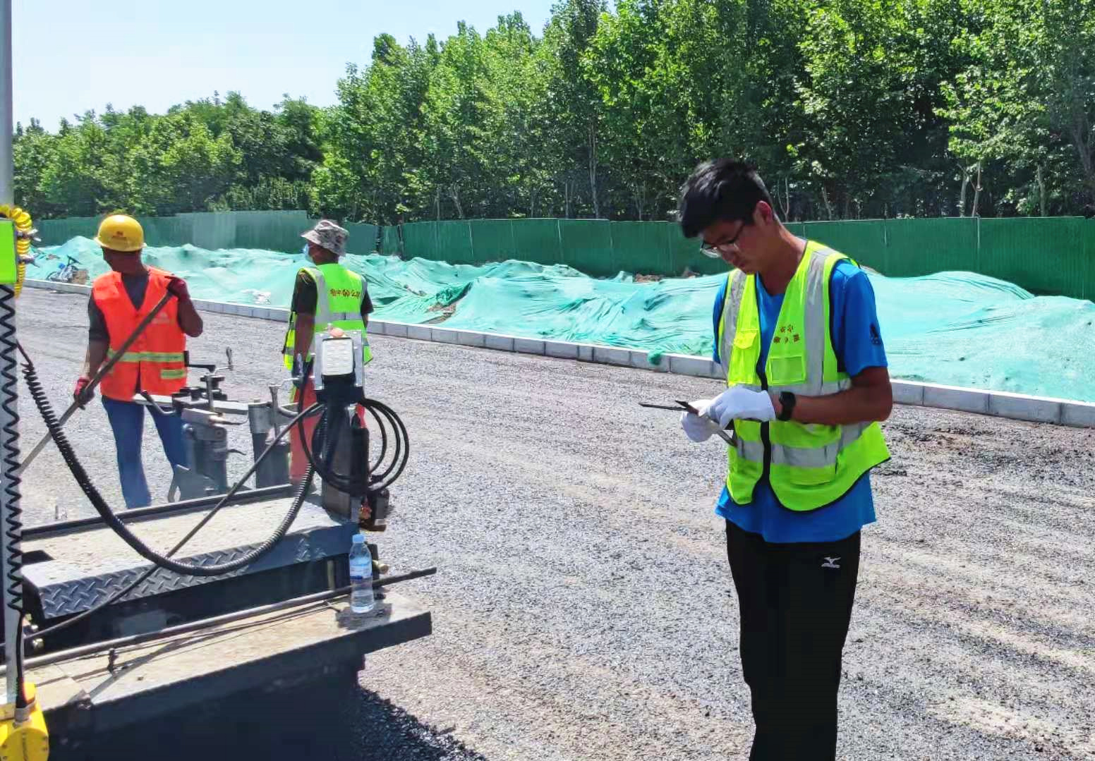 考工路瀝青上面層施工現(xiàn)場(chǎng)?