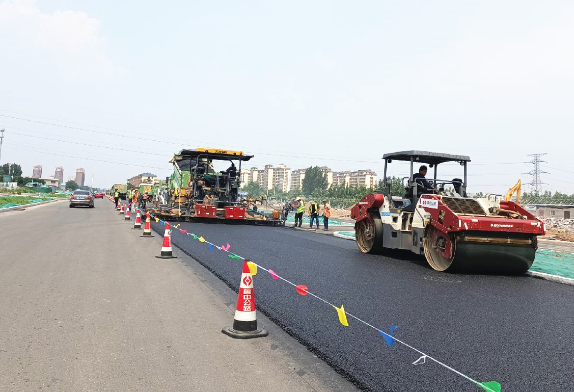 考工路瀝青下面層施工現(xiàn)場(chǎng)