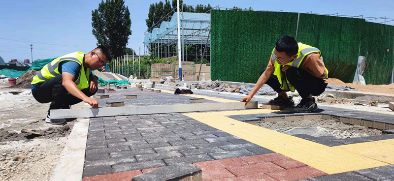 考工路人行道花磚鋪設(shè)施工現(xiàn)場(chǎng)