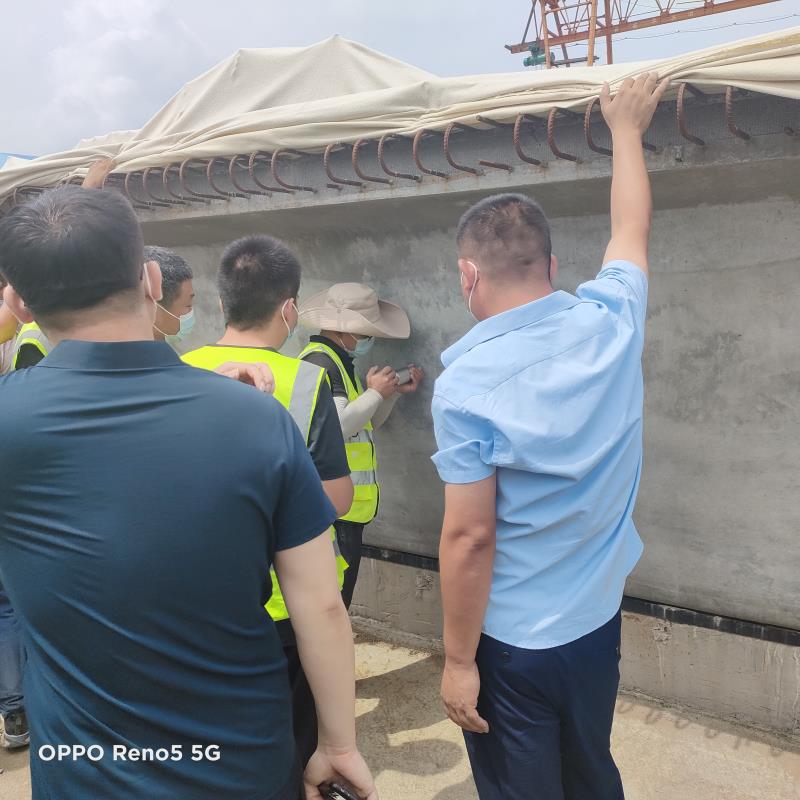 白馬河大橋施工現(xiàn)場(chǎng),質(zhì)監(jiān)站朱文芳站長(zhǎng)首先聽(tīng)取了項(xiàng)目人員對(duì)郯城G205項(xiàng)目施工的基本匯報(bào),重點(diǎn)講述了白馬河大橋現(xiàn)場(chǎng)施工的相關(guān)情況;朱站長(zhǎng)對(duì)白馬河橋現(xiàn)場(chǎng)安全用電、鋼筋籠墊塊設(shè)置等情況進(jìn)行了檢查指導(dǎo)。在梁場(chǎng)預(yù)制場(chǎng)現(xiàn)場(chǎng),重點(diǎn)查看了箱梁的預(yù)制區(qū)、養(yǎng)護(hù)區(qū)、存梁區(qū)設(shè)置,龍門吊張貼檢驗(yàn)合格證等情況。隨后檢查組一行人來(lái)到項(xiàng)目部駐地對(duì)內(nèi)內(nèi)業(yè)資料繼續(xù)寧了系統(tǒng)檢查,從安全內(nèi)業(yè)、施工內(nèi)業(yè)兩條主線進(jìn)行了相關(guān)指導(dǎo)工作,檢查過(guò)程中對(duì)照施工日志詢問(wèn)現(xiàn)場(chǎng)帶班人員施工情況,認(rèn)真了解工程建設(shè)實(shí)情。