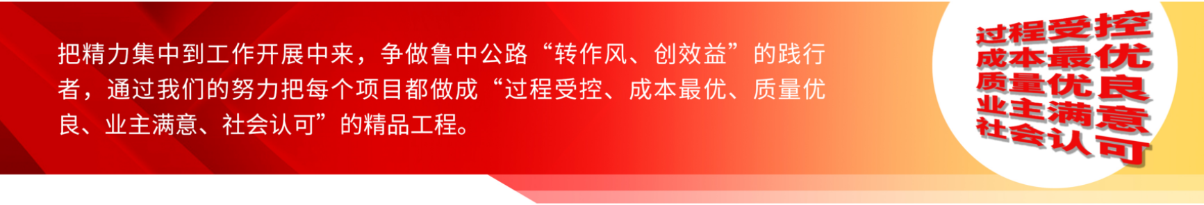 2021年伊始,公司立足當(dāng)下,著眼長(zhǎng)遠(yuǎn),提出了“創(chuàng)造過程受控、成本最優(yōu)、質(zhì)量?jī)?yōu)良、業(yè)主滿意、社會(huì)認(rèn)可的品牌工程,打造魯中公路的良好口碑,樹立魯中公路的優(yōu)質(zhì)品牌形象”的重點(diǎn)工作要求,燃起魯中公路干事創(chuàng)業(yè)的火種。隨著各個(gè)項(xiàng)目的展開,點(diǎn)點(diǎn)星火,已成燎原之勢(shì)。