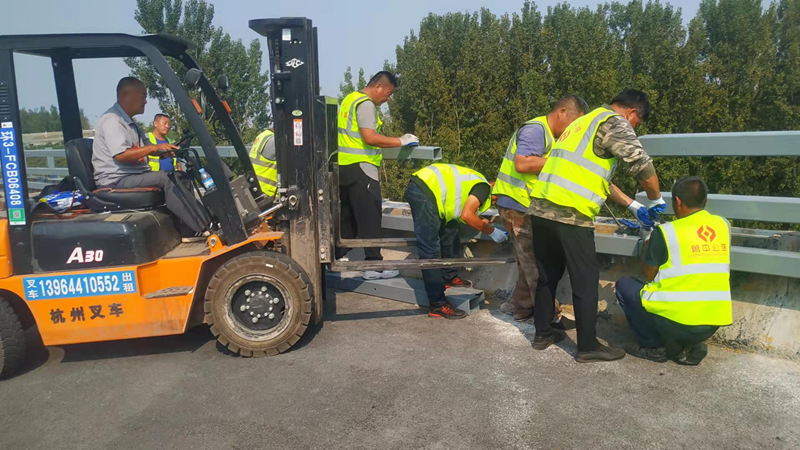 賈官大橋SS級護欄連夜突擊施工