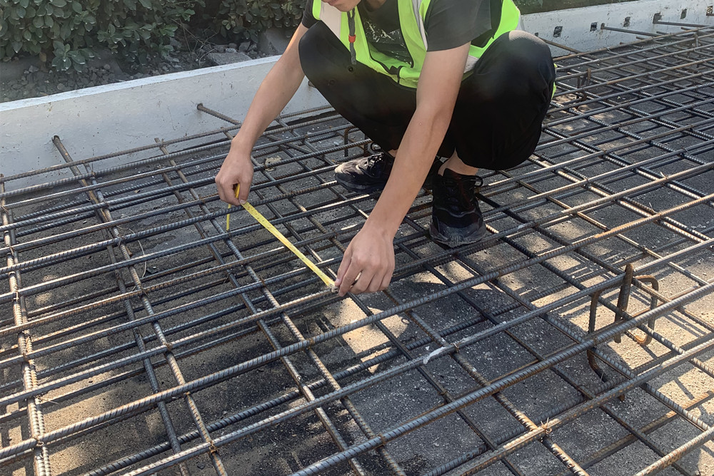 精準施策,破解現場施工難。世上沒有兩片相同的樹葉。對于G205混凝土路段而言,則沒有兩根相同的鋼筋,沒有兩片相同的模板。由于地勢形勢,本路段全線曲折多變,這要求每一根鋼筋、每一塊模板、每一道刻紋必須精準。從鋼筋綁扎開始,項目部人員便根據現場測得的實際坐標一塊板一塊板布設點位,電腦制圖,測算每一根鋼筋、每一塊模板的實際長寬等指標。刻紋時,先行模擬出刻紋方案方能進行實際操作。