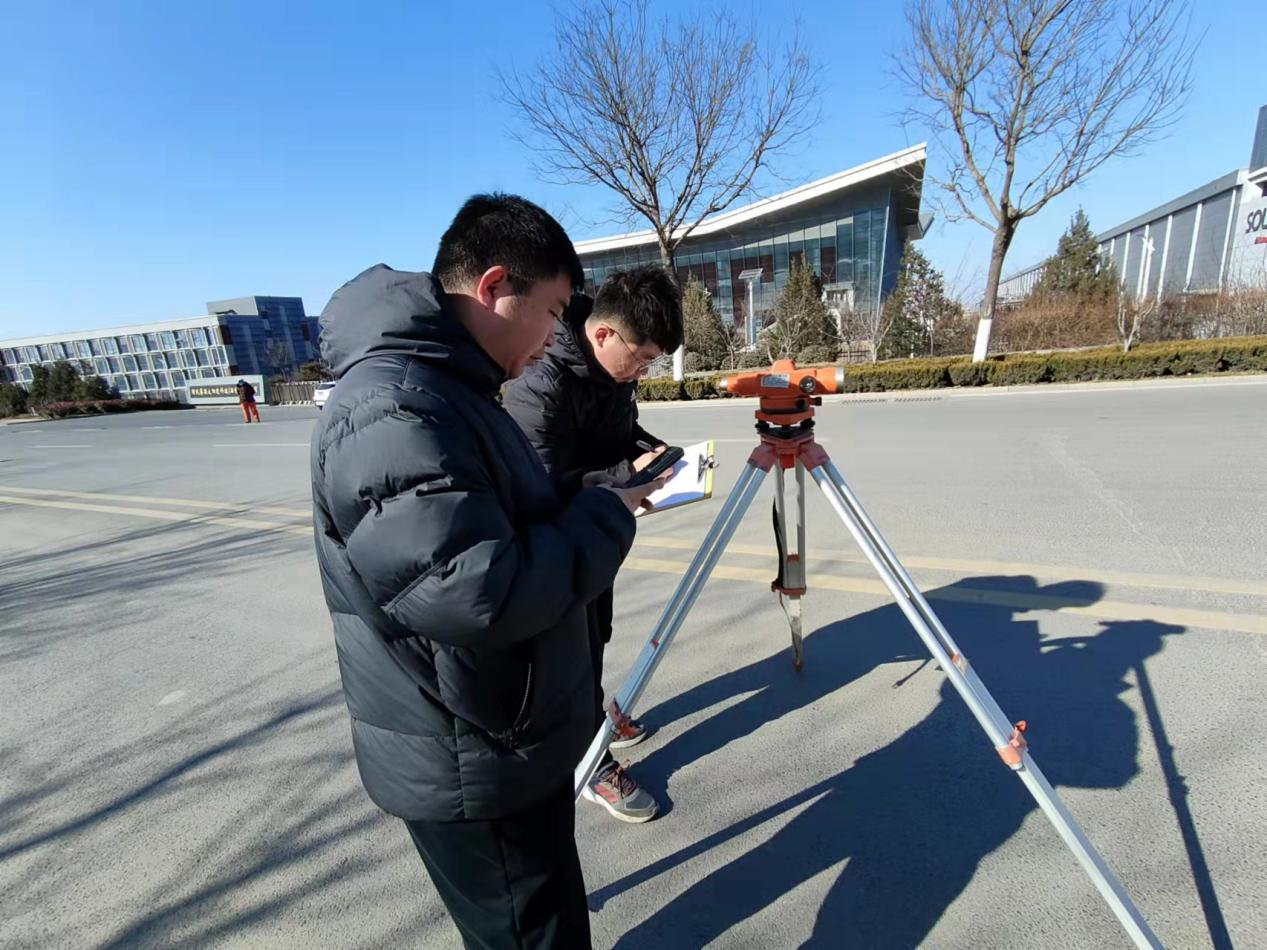 在四等水準(zhǔn)測(cè)量比賽中,雖然室外氣溫偏低,但參賽選手們依然信心滿滿、精神抖擻,各隊(duì)伍找點(diǎn)、觀測(cè)水準(zhǔn)路線,填寫(xiě)標(biāo)尺讀數(shù),計(jì)算視距差等一系列操作規(guī)范合理,快而精準(zhǔn)。