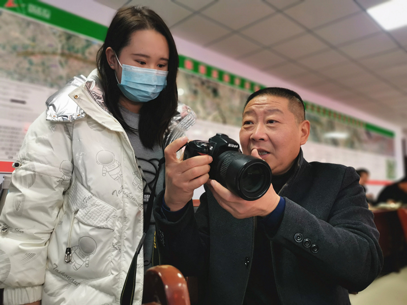老師向?qū)W員們教授攝影技巧