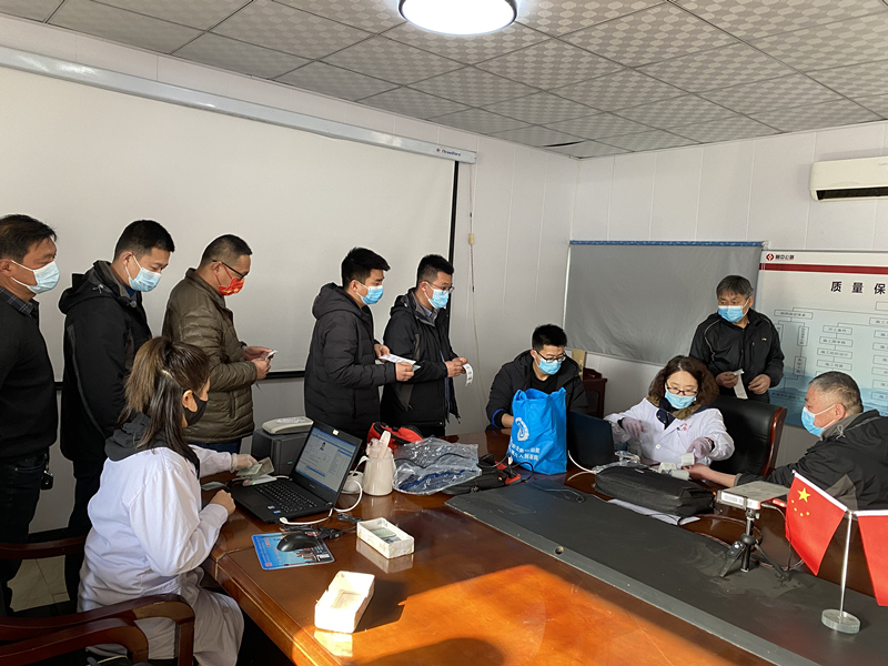 2022年3月9日上午,一輛載滿溫暖和關(guān)愛(ài)的溫馨巴士緩緩駛?cè)肱R沂分公司郯城綜合場(chǎng)站,來(lái)自淄博市職業(yè)病防治醫(yī)院的醫(yī)護(hù)工作者們?yōu)檑俺琼?xiàng)目的施工人員進(jìn)行專業(yè)的年度體檢工作,臨沂分公司和機(jī)械化施工公司近60位員工參加此次體檢。當(dāng)施工人員收到體檢車要進(jìn)項(xiàng)目體檢通知的時(shí)候,大家喜悅的心情溢于言表,省去了來(lái)回折返的時(shí)間成本,實(shí)現(xiàn)了在“大門口”就能體檢。