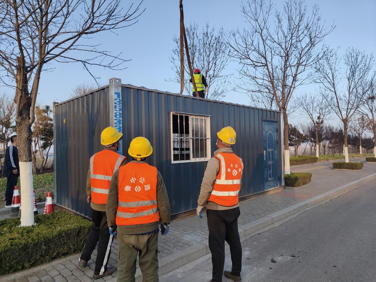 3月14日下午18時(shí),魯中公路第五區(qū)域項(xiàng)目部將施工現(xiàn)場(chǎng)集裝箱運(yùn)至G205將軍路路口,為防疫工作人員送去溫暖。