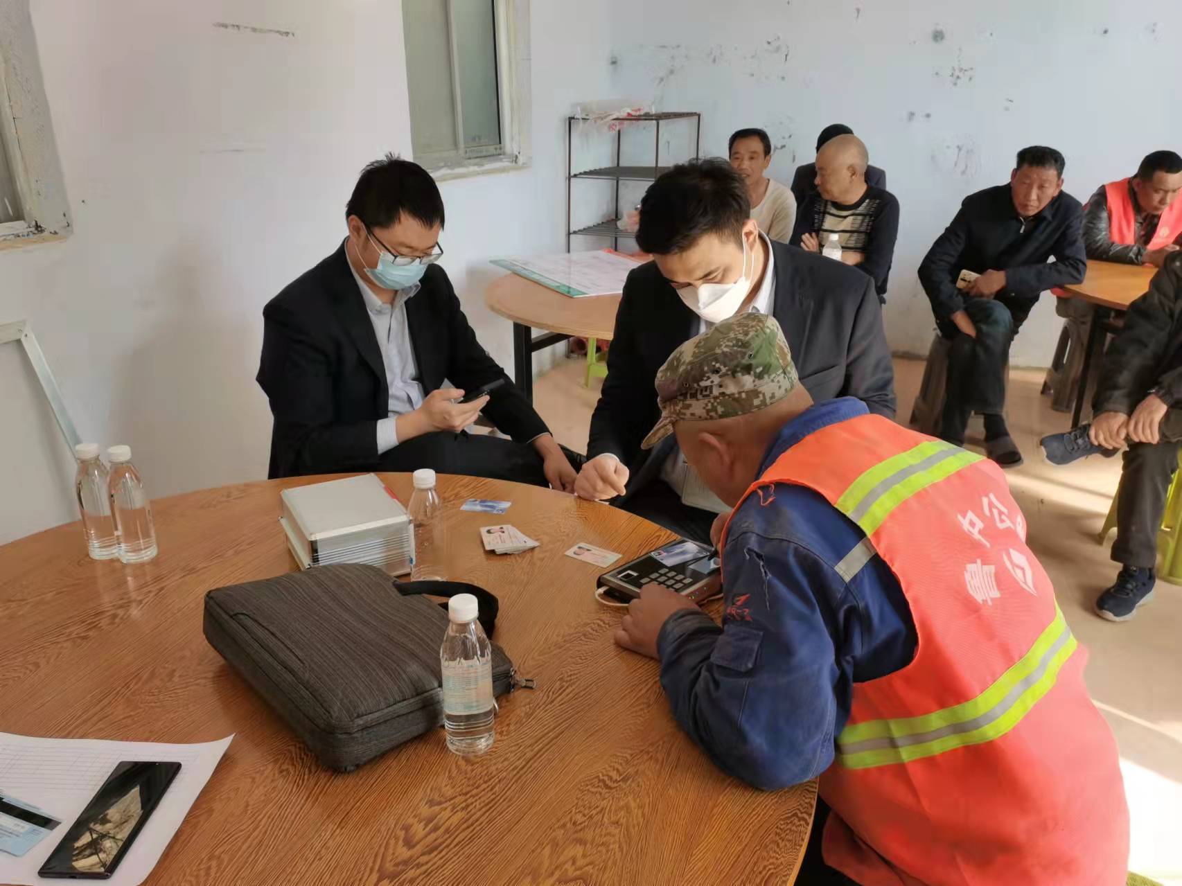 臨臨高速六標(biāo)會(huì)議室中,農(nóng)民工在項(xiàng)目部勞資管理員和銀行工作人員的指導(dǎo)下,有秩序地進(jìn)行銀行卡辦理工作??紤]到部分農(nóng)民工因工作原因無(wú)法到現(xiàn)場(chǎng)辦卡,項(xiàng)目部和銀行工作人員來到虎山隧道施工處,為工作中的農(nóng)民工現(xiàn)場(chǎng)辦理工資卡,接下來,辦卡工作人員還將陸續(xù)進(jìn)入中莊綜合場(chǎng)站、韓王崮隧道、西里綜合場(chǎng)站、大橋施工處等工地一線為農(nóng)民工現(xiàn)場(chǎng)辦理工資卡。