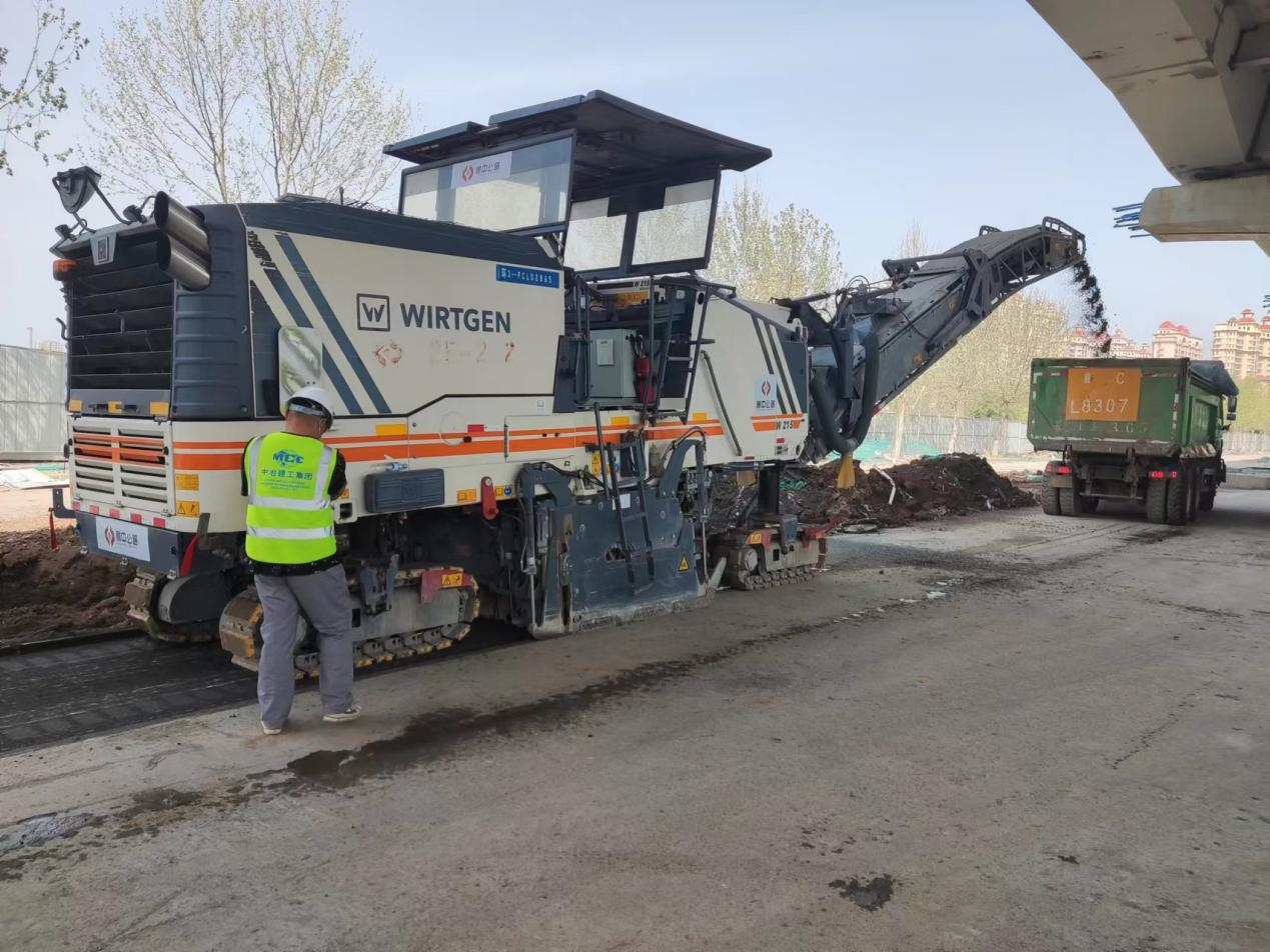 4月10日,機械化施工公司銑刨機進場,展開主路面層銑刨工作。根據(jù)快速路高架橋需求,兩側各 11m 寬機動車道保留,進行病害處理、銑刨4cm 瀝青面層后罩面利用。保留兩側分隔帶、兩側輔路銑刨并罩面利用,現(xiàn)狀人行道翻建。高架橋增設進出口匝道段落、占用現(xiàn)狀兩側分隔帶、輔路的,對兩側分隔帶、輔路進行相應加寬改造、占用人行道部分,在外側新建人行道。