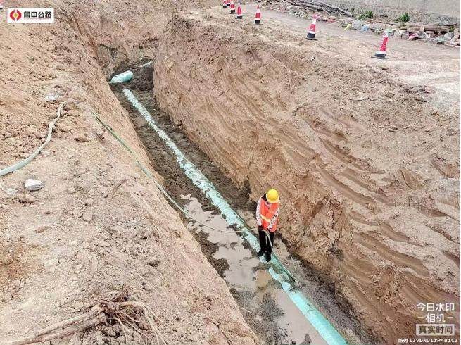 污水工程:A0+200-A0+342段完成142m,倒虹吸檢查井基礎(chǔ)完成2座。