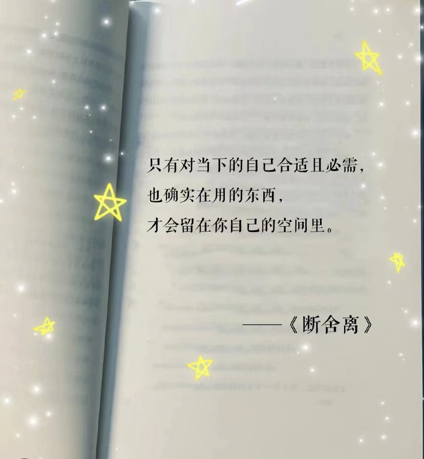 首次聽說“斷舍離”這個詞匯還是在抖音某個博主的視頻中,《斷舍離》是一本家庭生活類著作,該書主要講述了日本雜物管理咨詢師山下英子推出的概念:斷=斷絕不需要的東西、舍=舍棄多余的廢物、離=脫離對物資的執(zhí)念,讓自己處于寬敞舒適、自由自在的空間。