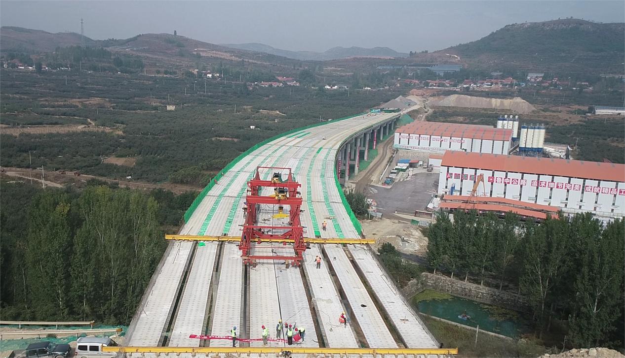 苗莊特大橋處架橋機(jī)已安裝、調(diào)試完畢,做好吊裝準(zhǔn)備