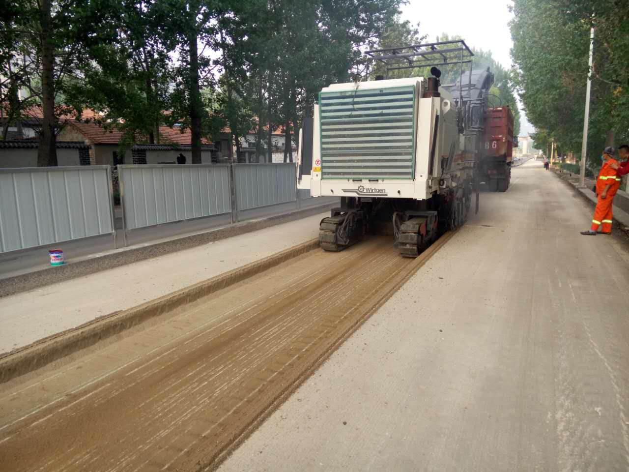 大修段的彩鋼瓦圍擋后面我們進(jìn)行面層、基層銑刨。