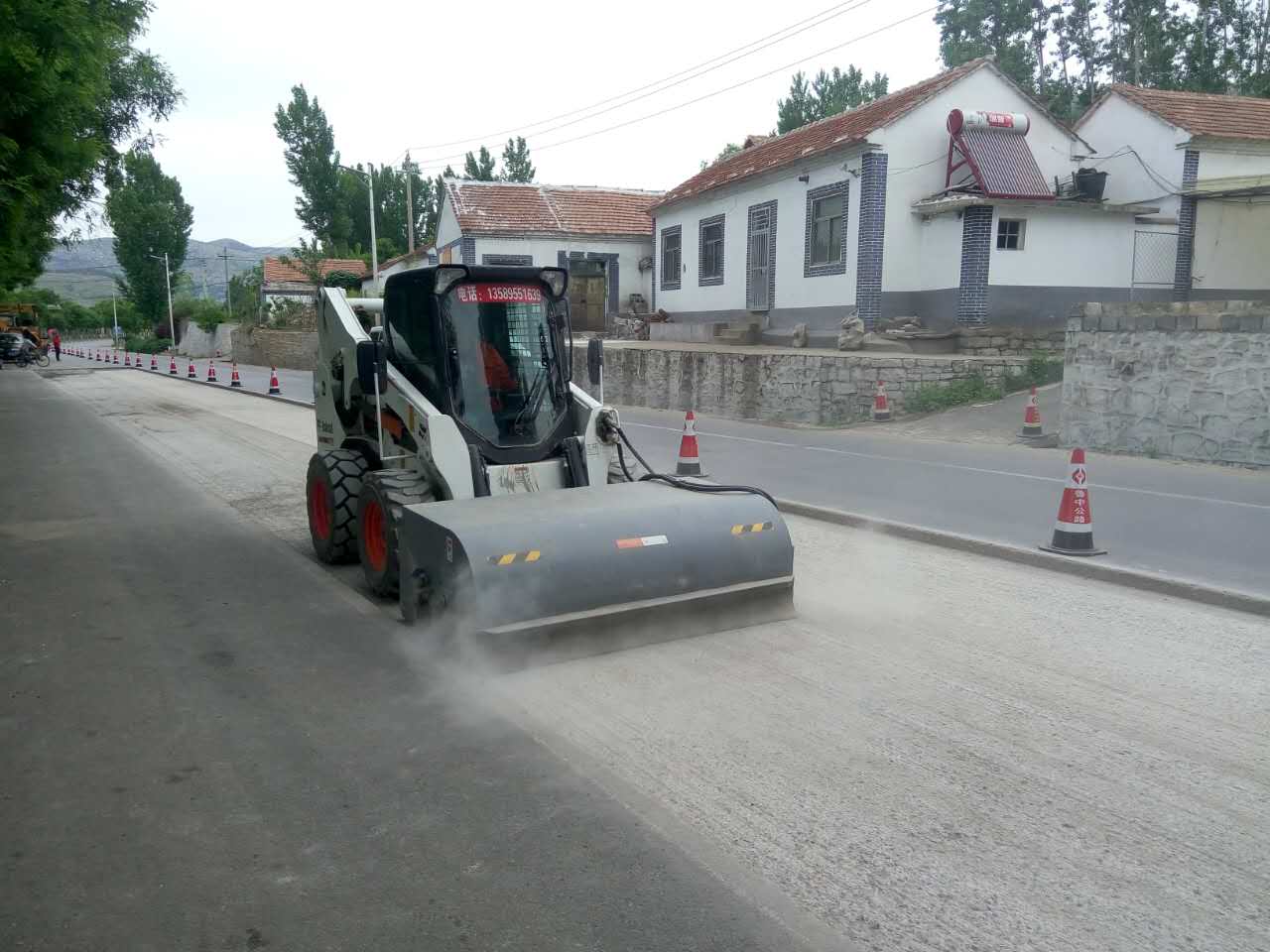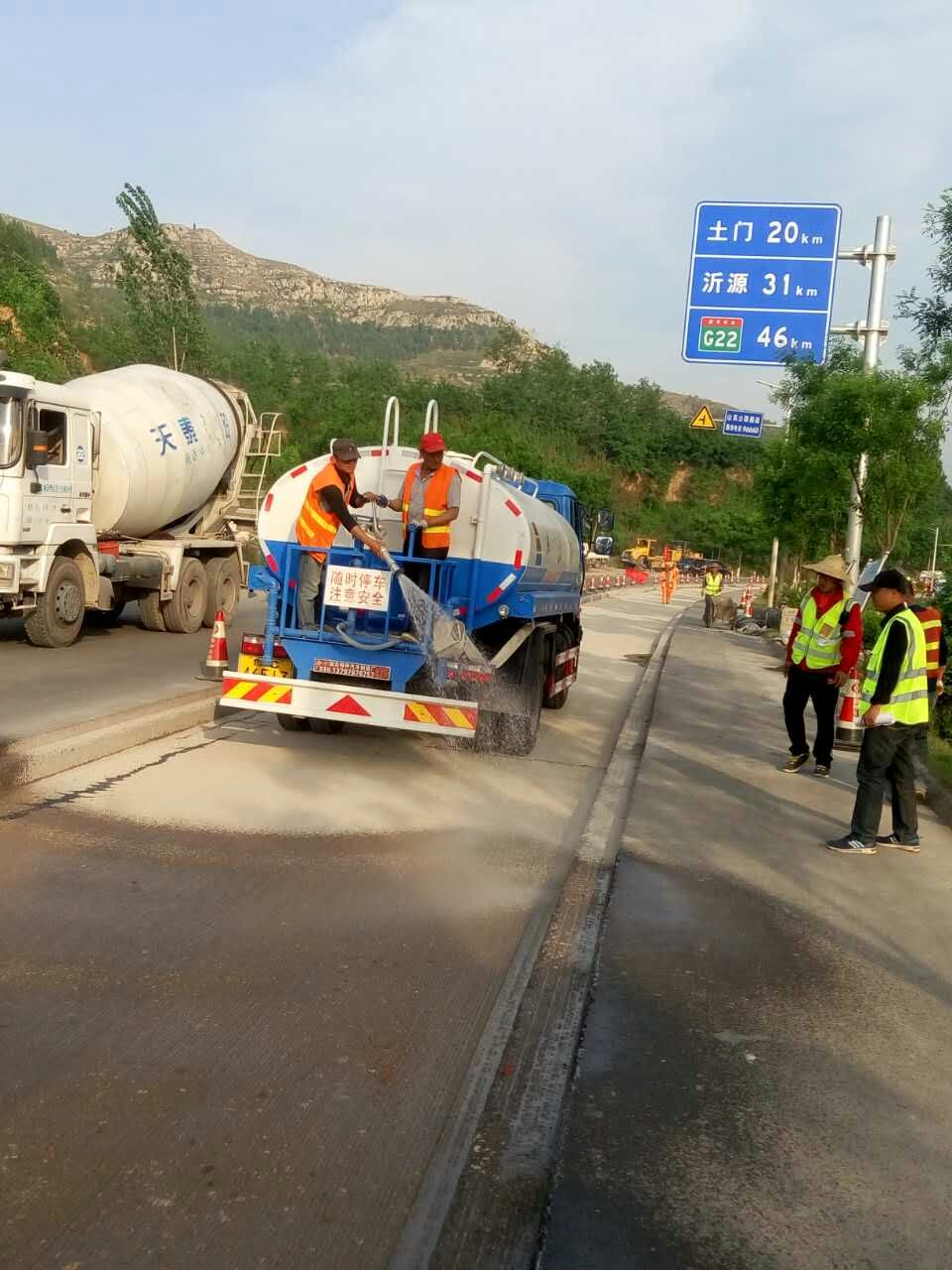 在銑刨過程中,我們進(jìn)行了水炮灑水降塵。