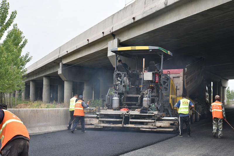 在京滬變更項(xiàng)目下穿劉瓦線施工現(xiàn)場(chǎng),瀝青路面加高正在緊張的鋪設(shè)中,“剛出鍋”熱騰騰的瀝青料、現(xiàn)場(chǎng)施工人員肆意揮灑的汗水、來(lái)回碾壓的施工機(jī)械,用奮斗譜寫(xiě)勞動(dòng)的意義。