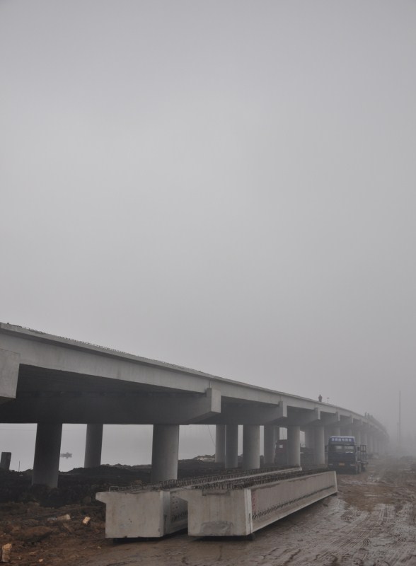 正在施工建設(shè)中的白尼河橋一隅